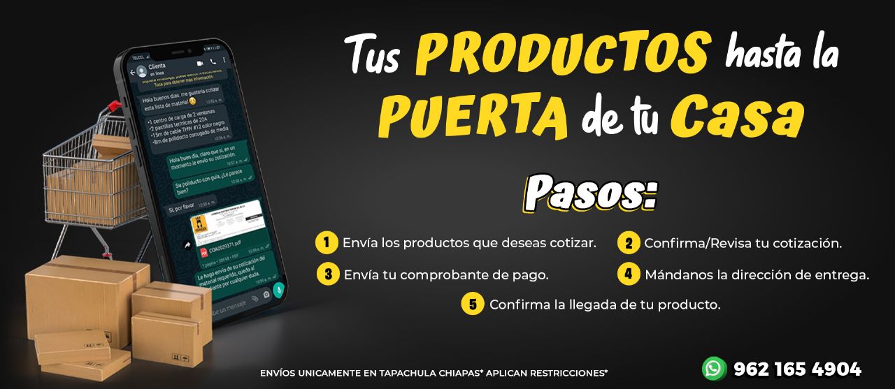 Nos aseguramos de que no tengas que salir de casa por medio de nuestro nuevo servicio de entrega a domicilio dentro de Tapachula a partir de una compra mínima de $1,500.